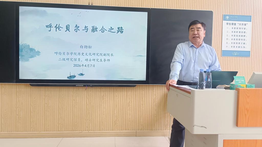 4月7日,白劲松研究员作了两场专题学术讲座,分别面向旅游管理专业研一学生和全院教职工。讲座围绕呼伦贝尔在民族融合史上的重要地位,以及内蒙古地区考古发现所揭示的灿烂历史文化展开,内容丰富、视野宏阔,受到师生热烈欢迎。